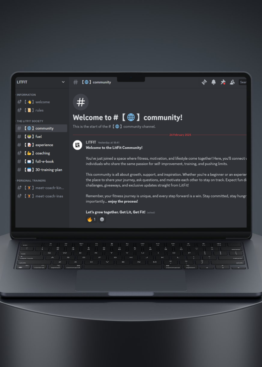 The Exclusive Discord Hub is where the LITFIT community comes alive, a space to challenge yourself, win prizes, and connect with others on the same journey. Whether you're sharing progress, asking questions, or dropping your favorite meals and tips, there's always value and supports powered by real people and real connection.